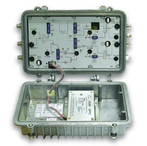 Overview        TGM2800D bi-directional amplifier adopts imported GaAs module amplification. It can be used in CATV network, digital network and telecom network with high gain, low distortion and excellent flatness. It can be used as an amplifier or a distribution amplifier in bidirectional CATV system. Each port has independent bidirectional filter facilitates network test. Features         Input stage adopt imported CATV head-end amplifier modules, input and output stage adopt imported CATV exclusive power multiplier amplifier module, greatly improved the nonlinear distortion characteristics, RF output level is up to 108dBuV